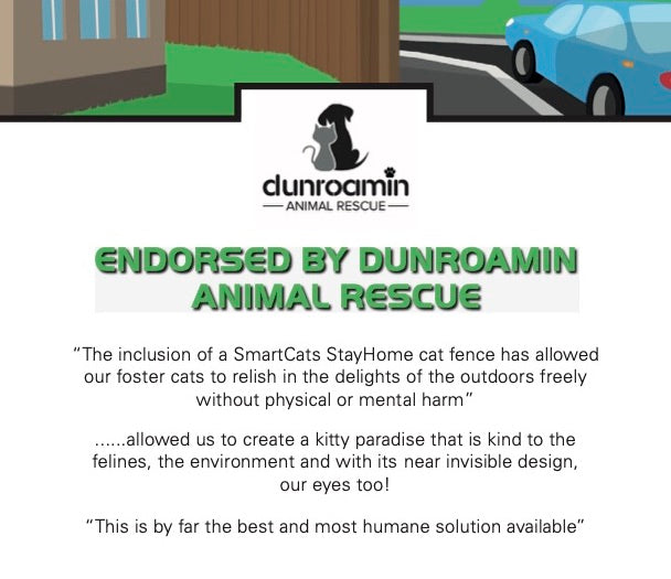 SmartCats StayHome cat fences are fully endosed by Dunroamin Animal Rescue.