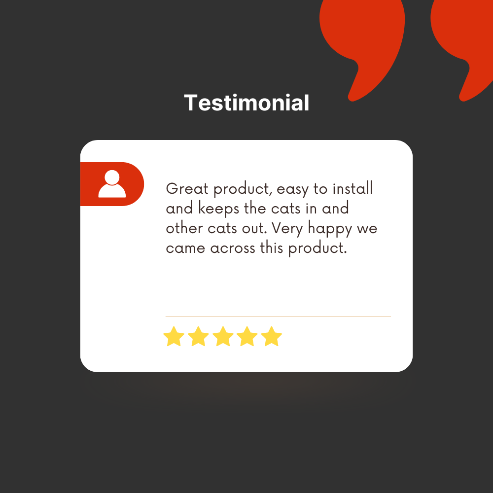 Great product, easy to install and keeps the cats in and other cats out.