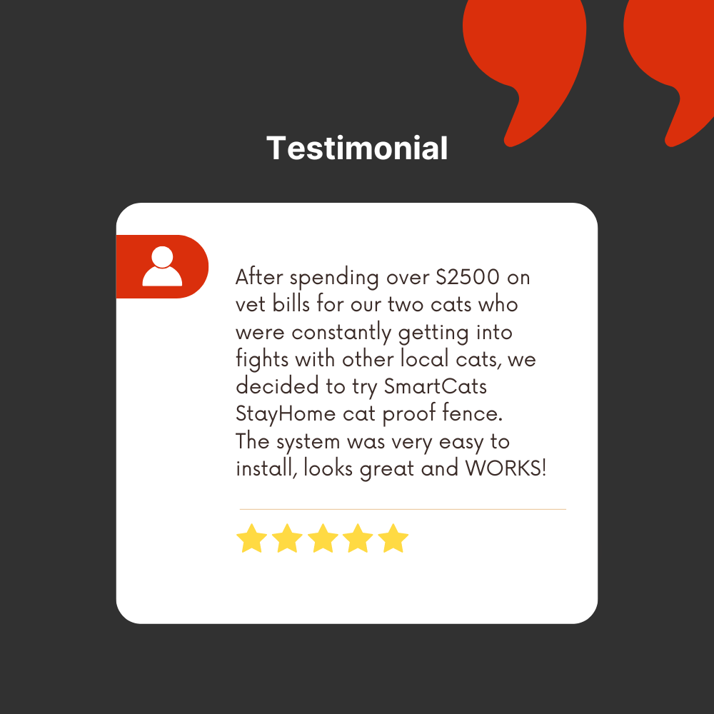 Designed for easy DIY installation and with our step-by-step video guide, this fully supported cat fence solution with Australian manufactured controller will allow you to provide a safe haven for your precious feline friend to move around, inside and out, while staying safe on your property.