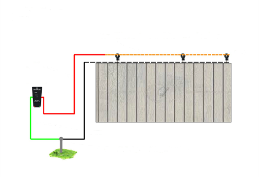 A thin Polywire attaches to brackets at the top of your fence and is supported 60mm above the top of your fence. The SmartCats controller puts a small electronic pulse in the wire once every second, for example pulse.....pulse.....pulse.....pulse.....